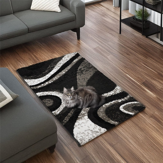 Covor Obsidian Tide, Negru/Alb/Gri, Incalzire in pardoseala, Fir Scurt si Des de 8 mm, 125×200 cm, 1300 g/m², BravaCasa