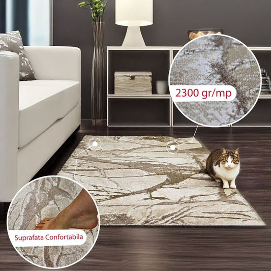 Covor Beige Horizon, Living/Dormitor, Crem, Bej, Incalzire in pardoseala, Fir Scurt 11 mm, Dimensiuni 50x80 cm, 2200 g/m², BravaCasa