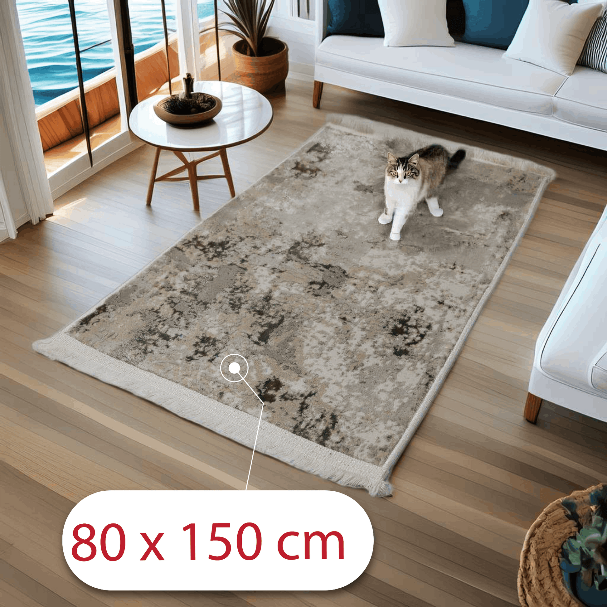 - Dimensiuni Generoase: Cu masuri de 80 cm x 150 cm, acest covor acopera cu generozitate podeaua, fiind ideal pentru camere de orice dimensiune. Este perfect pentru a crea zone de confort si a lega elementele de mobilier. 📏